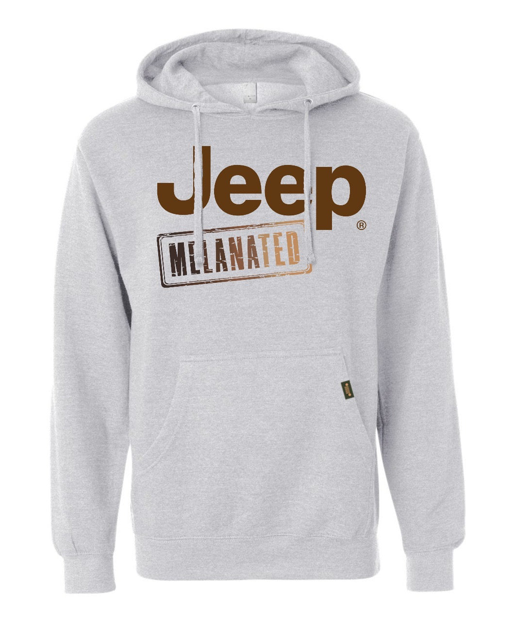 The Melanated Jeep Stamp Hoodie boldly merges two worlds: the legendary Jeep® lifestyle and unapologetic melanin pride. Featuring the iconic Jeep logo stacked above a distressed "MELANATED" stamp in bold block letters, this hoodie is more than gear — it’s your uniform for the culture, built for every trail and every city street.